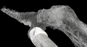 A 3D point cloud model of the old drainage adit and pipe jack intersection.