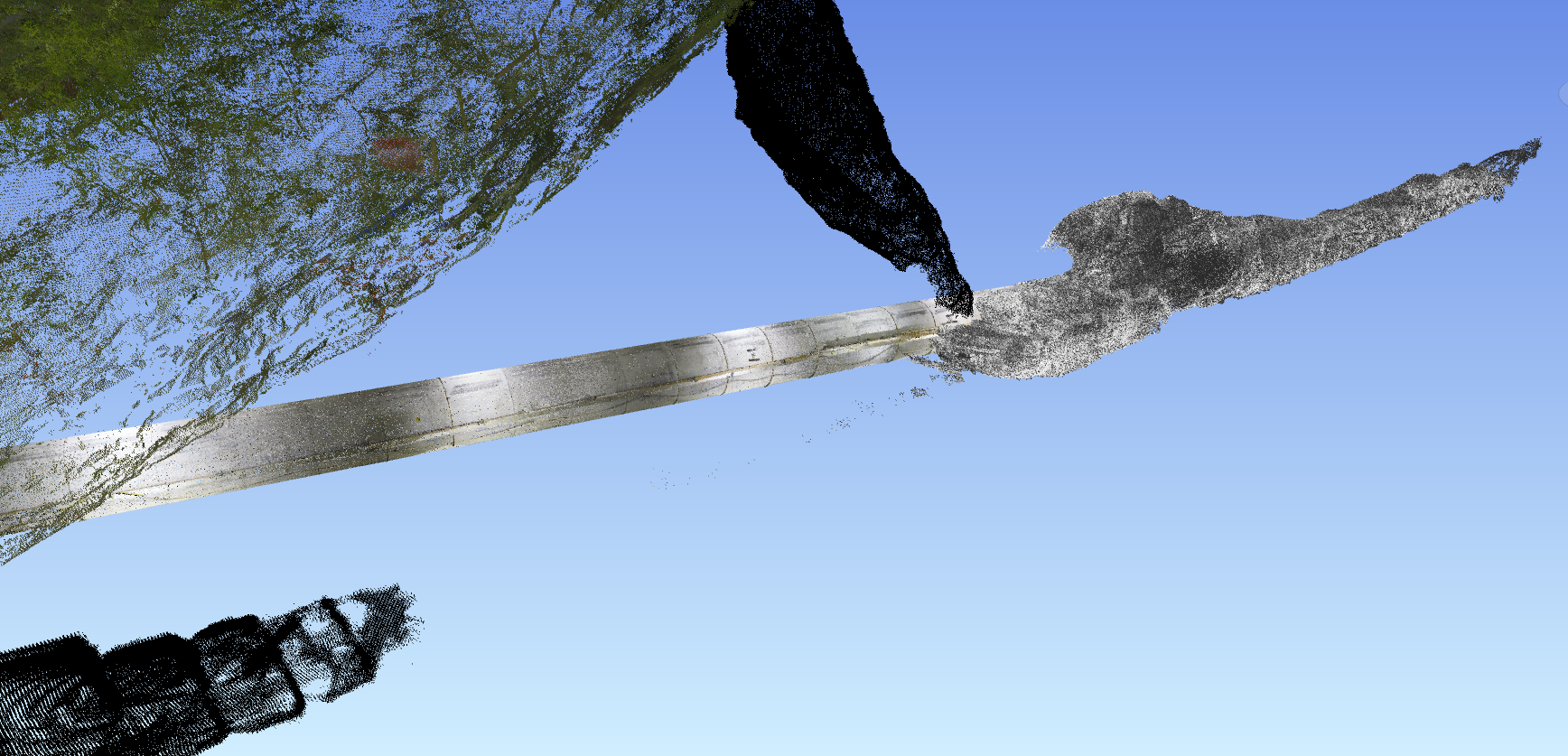 A 3D point cloud model of the old drainage adit, access shaft and surface.